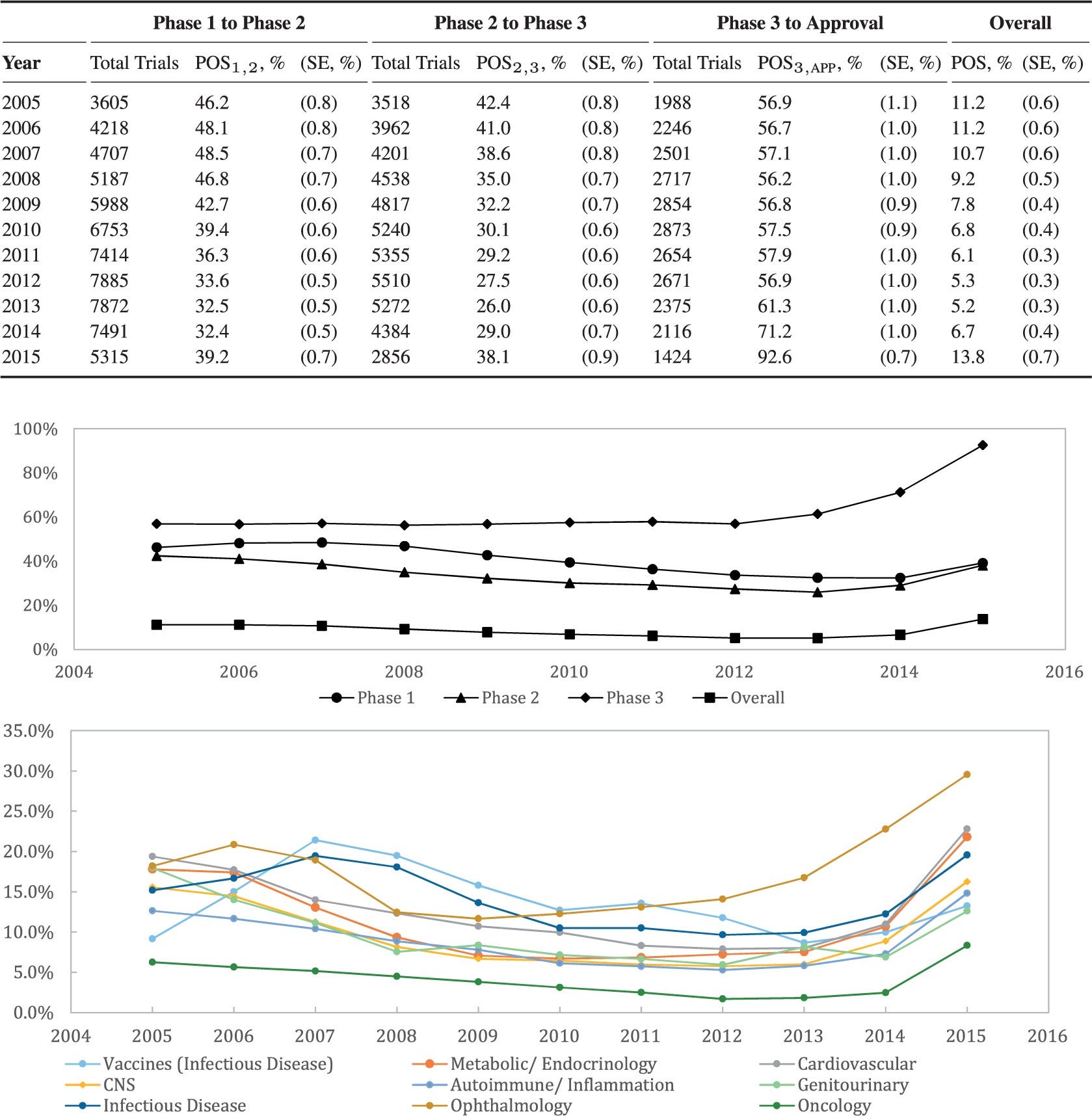 Lawyers at Harvard Medical School’s Program on Regulation, Therapeutics and Law analyzed the FDA’s drug approvals between 1983 and 2018. The authors found the FDA’s median review time for standard applications falling from 2.8 years between 1986 and 1992 to ten months in 2018. The number of average new drug approvals per year increased from 34 in the 1990s to 41 in the 2010s. Since new meds take several years and billions of dollars to hit the market, more novel drugs per year sounds great. After knowing the real drivers of those quicker approvals, that’s not the only conclusion to draw. The triggers start with the Orphan Drug Act of 1983 (making rare-disease targets easier to develop) and the higher incidence of drug companies paying fees to the FDA since then to backstop the agency’s review process. By 2018, industry players’ fees made up ~80% of FDA employee salaries for drug reviews. That regulator also instituted “accelerated approval” in 1992. That designation among others is meant for drugs addressing conditions with no alternatives or drugs being much better than the next best choice. With a traditional approval, pharma companies have to prove their drug can deal a quantifiable net benefit for the patient’s disease. The cancer has to go into remission. The rash has to go away or critical symptoms need to subside. Those benchmarks paired with some appropriate statistic are called endpoints. Ever since the advent of accelerated approval and breakthrough therapies, the FDA’s allowed for surrogate and intermediate endpoints. A surrogate endpoint can be a lab measurement, image, sign, or statistic that suggests a medical benefit but is not actually a medical benefit. Intermediate clinical endpoints may capture some therapeutic effect that should happen on the way to an intended outcome of a drug. A simple example is novel cancer treatment. One might expect that if a given drug puts a cancer into remission, that’s great. Unfortunately, that will take lots of time to figure out using traditional steps. If a drugmaker builds a cancer medication that’s proven to reduce tumor size (but not necessarily put down the cancer for good), the FDA might consider that evidence good enough for quick approval. That measure can be thought of as a reasonable predictor of an effective medicine. We’ve seen the emergency use authorizations in play for the Covid-19 vaccines and antiviral pills. Are faster approvals changing the actual success rates of new drugs?