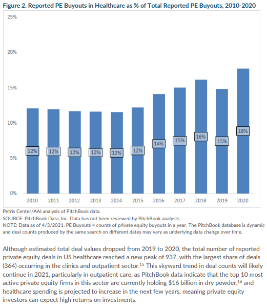 Big tech’s not the first cohort spending billions on healthcare acquisitions. The UnitedHealth Group conglomerate has been scooping up large and small players for decades. If you look up vertical integration in healthcare, you’ll probably just find the UnitedHealthCare logo. That company directly employs almost 100k physicians while running a massive prescription benefit operation. And of course, their traditional health coverage supports these newer activities. Even during this year, so far, UnitedHealth committed ~$19.2B to buy LHC group ($5.4B announced 3/2022) for home health facilities and Change Healthcare ($13.8B announced 2/2022) for clinic management/payments solutions. So why are businesses and investors alike buying medical clinics with this kind of money lying around? Various players believe they can step into a clinic, turn up the billing, reduce costs, and fund those moves with debt to secure amazing returns. The better question is: do those compounding gains move in sync with patients’ care quality and experiences? The answer in practice is more complicated than the answer in theory.