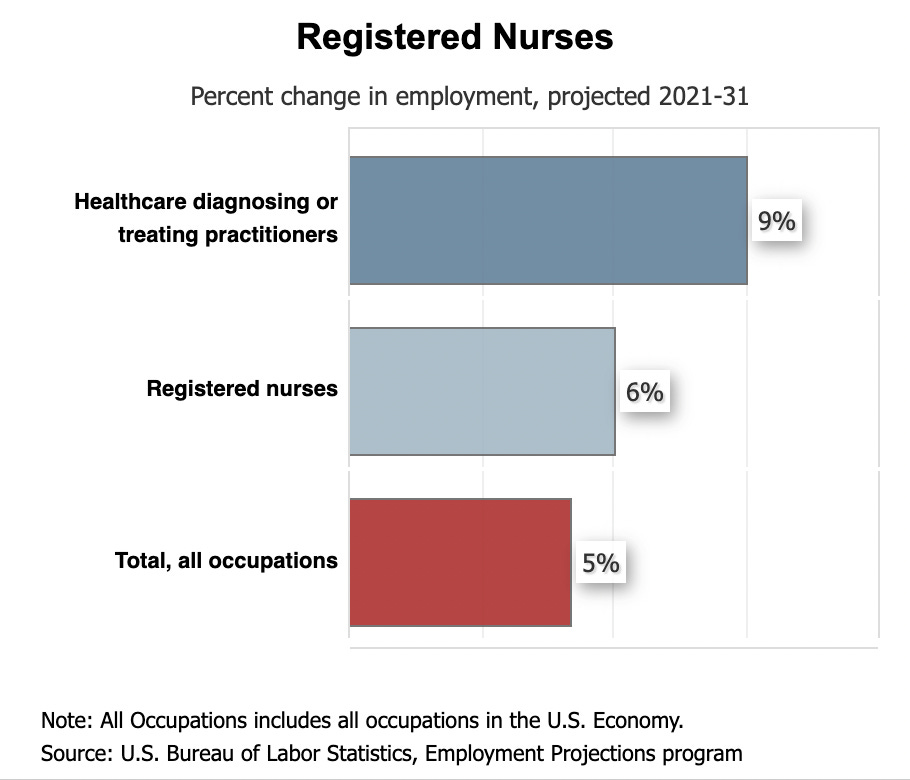 Registered Nurses (RNs) are thought to make up the largest share of healthcare workers. Think about who you spend the most time with at the clinic. You’re probably getting more face time with a nurse or PA than a doctor. This is not a diss. Nurses record critical medical history as well as educate patients about treatment or how the clinic operates. Beyond that, RNs can be plugged into just about any medical specialty whether it be a supporting or leading position. The Bureau of Labor Statistics estimated about that the 3.1M RNs in the US today will grow ~6% from 2021-2031. This is a bit more than the agency’s forecast of 5% growth for all occupations and less than the 9% projected increase for all healthcare practitioners. Subscribe to Friendly Neighborhood Patient for more of these Meds in a Minute breakdowns! I’ll catch you at the next episode.